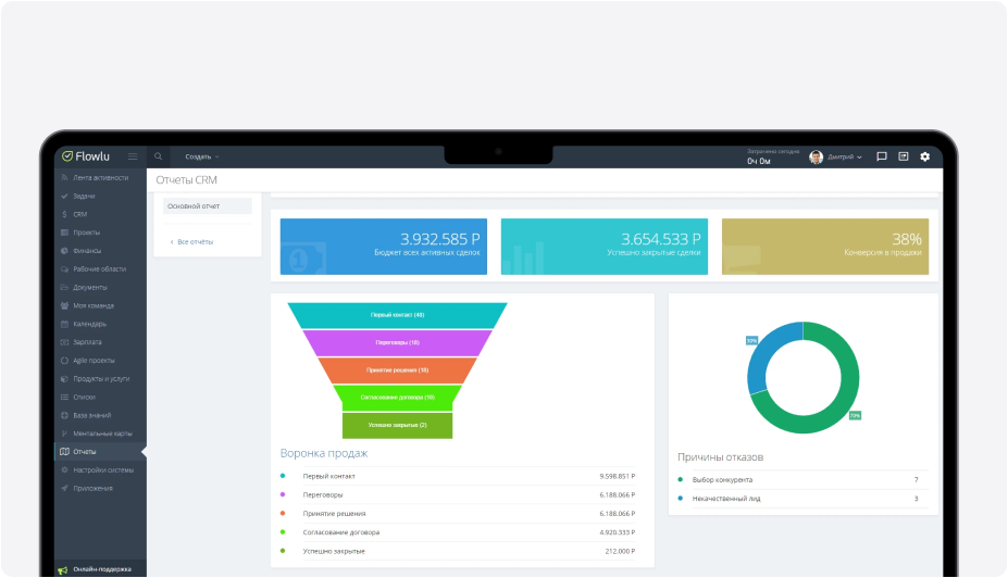 • Улучшение конверсии. Анализируя показатели, компания может понять, где именно на пути к сделке пропадают клиенты, и принять меры для снижения потерь.