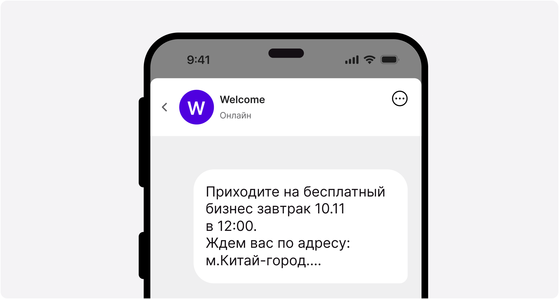 Если отправка сообщений происходит с неизвестного номера, в самом начале нужно указать отправителя — лучше всего название бренда или фирмы читается в русской транскрипции. Кроме имени, следует прописать контакты — подойдет короткая ссылка на сайт или группу в социальной сети, номер телефона. Так покупатель будет избавлен от необходимости совершать дополнительные действия — искать магазин или заведение в интернете. Он сможет сразу узнать подробности.